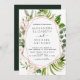 Greenery Eucalyptus Botanical and Rose Gold Geometric Watercolor Spring Wedding Invitations on White background - includes beautiful and elegant script typography with modern botanical leaves and greenery for the special Wedding day celebration.