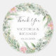Beautiful wedding Thank You stickers featuring blush pink floral watercolor eucalyptus and gold leaves.