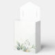 Beautiful wedding favour box featuring watercolor eucalyptus and gold leaves.