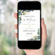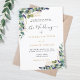 A white background decorated with watercolored eucalyptus greenery, lavender florals and golden foliage. Personalize and add your names and wedding details. Black and golden coloured letters.