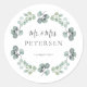 Eucalyptus greenery mr and mrs name wedding classic round sticker