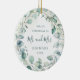 Eucalyptus Greenery Mr. and Mrs. Newlywed Photo Ceramic Ornament
