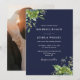 Eucalyptus Greenery Navy Blue Photo Wedding Invitation