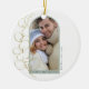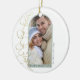 Pretty gold foil eucalyptus greenery sprig over a eucalyptus green arch with your special photo. Happy Holidays greeting with room for family name and year. A unique and lovely keepsake Christmas tree ornament!