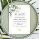A chic white background. Decorated with green watercolored eucalyptus leaves, sprigs, greenery and a faux gold sprig. Personalize and add your names and ceremony details. Black letters.