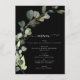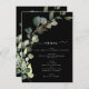 Eucalyptus Greenery Succulent Botanical Watercolor Spring Wedding Reception Lunch, Dinner, Brunch Menu on black background - includes beautiful and elegant script typography with modern botanical leaves and greenery for the special Wedding day celebration.
