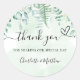 A green watercolored background. Decorated with eucalyptus greenery and forest fern. With the text: Thank you for sharing our special day. Personalize and add your names.