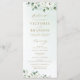 Modern chic watercolor white floral eucalyptus greenery with gold colour text on dusty green background, with trendy script, elegant and stylish, great wedding programs for rustic wedding, botanical wedding and beach wedding in spring and summer.