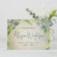 Unique and modern graduation party invitation for daughter with photo template and grunge leaves design. Double-sided announcement or grad party invite in horizontal setup has the option to download and share digitally. Her name is in tall script on the front with blue-green eucalyptus leaves making a botanical border. A vertical photo template on the back is next to the text templates in blue, over a distressed background and decorated with more eucalyptus, with sprigs of lavender flowers.