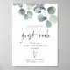 Eucalyptus Sign our Guest Book Printable Wedding Sign. Watercolor eucalyptus leaves flow across the top of this modern design which you can easily personalise and change colour via the edit further option if you so wish. Available printed or as a printable digital download.