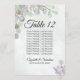 These elegant wedding table cards feature a rustic boho chic design with hand painted watercolor eucalyptus leaves and lavender flowers in shades of sage green and light purple. The card includes a list of names so your guests will have an easy time finding the right table.