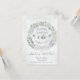 This beautiful card is designed as a special way to invite your sister, cousin, or best friend to be the maid of honour at your wedding. It features a beautiful hand painted watercolor wreath of eucalyptus leaves, greenery, and lavender flowers in shades of sage green and purple. The text reads: I can't say "I Do" without you! Please be my Maid of Honour. There is space for her name, your signature, as well as the names of the couple and wedding date. The back features a marbled dusty blue background with a bouquet tied with a white satin bow.