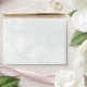 These beautiful envelopes will add a touch of class to your wedding invitations. They feature an elegant yet rustic boho chic design with a delicate bouquet of eucalyptus leaves and lavender flowers tied with a white bow on a marbled dusty or steel blue background. Your return address is printed on the back flap, and the inside flap features sprigs of the same hand painted watercolor greenery and foliage.