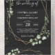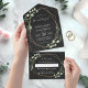 Eucalyptus Leaves Geometric Black Gold Wedding All In One Invitation