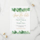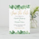 A beautiful gold and green eucalyptus formal wedding save the date card. Add your names and the date and place of the wedding.