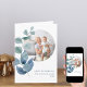 Add your photo to this pretty Mother's Day card - or use the template to edit for any other occasion. This elegant and delicate design has a branch of eucalyptus leaves in dusty blue and green. The photo template is set up to display your photo in a round shape and if you have any difficulty with picture placement, you could try cropping your photo to a square before uploading.