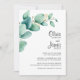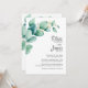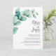 Invite your friends and loved ones to your wedding with this modern invitation featuring watercolor green eucalyptus leaves.