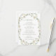 Enhance your timeless wedding celebration with an elegant botanican themed menu card. Showcasing a delicate wreath of white peonies intertwined with greenery eucalyptus leaves. This refined design is complemented by a personalized touch—the bride and groom mnogram on the back, creating a memorable and distinctive element for your special autumn outdoor garden celebration.