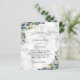 Marble print as background decorated with eucalyptus greenery and golden foliage. Personalize and add your names and wedding details. Black letters.