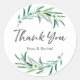 Mariage floral Eucalyptus autocollants de remerciement personnalisés pour les scellés d'enveloppe ou les faveurs, présenter l'aquarelle feuille eucalyptus couronne. Des modèles correspondants sont également disponibles.