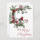 Beautiful Merry Christmas card with pine branches, pinecones, roses, eucalyptus and a bird. On the back there is space for your holiday message and names. Perfect to send to family and friends. See our coordinating items as well.