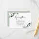 Eucalyptus White and Sage Modern Calligraphy Reception Info Horizontal Enclosure Card... Designed to coordinate with our Eucalyptus Greenery wedding invitations, our horizontal reception enclosure card informs your guests of the activities taking place after the wedding ceremony. Our dedicated botanical reception card features emerald-hued eucalyptus leaves bordering your reception information on a crisp white background. The back of the card is trendy sage green. Chic modern calligraphy displays the text for "Reception." All other text can be easily revised on the personalization template.