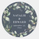 Eucalyptus navy blue botanical wedding party decor classic round sticker
