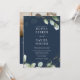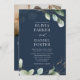 This eucalyptus and navy blue wedding invitation is the perfect blend of modern elegance and natural charm. The deep navy backdrop highlights soft watercolor eucalyptus leaves, creating a timeless botanical look that feels fresh, stylish, and sophisticated.
