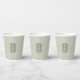 With a color palette from ivory to spring green and dark moss, this wedding collection features a handwritten script font and eucalyptus leaf accents to add that wonderful modern touch. The coordinating paper cup shown here has all the above with a striking eucalyptus leaf pattern and rectangular, white-trimmed frame to hold your initials and wedding date. Search ID901 to see other color choices and coordinating pieces for this unique wedding collection.