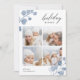 Partagez vos voeux de vacances avec ces cartes de collage photo chic de Noël avec quatre de vos photos carrés préférées encadrées en haut et en bas par des feuilles d'eucalyptus aquarellés en bleu pastel. "Vacances désirées" apparaît en haut à droite dans un élégant mélange de calligraphie et de lettres modernes, et l'année est soigneusement cachée dans l'un des feuilles. Personnalisez avec votre nom de famille en bas à gauche.