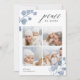 Partagez vos voeux de vacances avec ces cartes de collage photo chic de Noël avec quatre de vos photos carrés préférées encadrées en haut et en bas par des feuilles d'eucalyptus aquarellés en bleu pastel. "Paix sur Terre" apparaît en haut à droite dans un élégant mélange de calligraphie et de lettres modernes, et l'année est soigneusement cachée dans l'un des feuilles. Personnalisez avec votre nom de famille en bas à gauche.