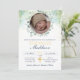 Invite your guests to your baby's Christening with this beautiful eucalyptus, photo template, and watercolor template invitation. Small watercolor gold cross at bottom accentuates the watercolor greenery at top surrounding photo.