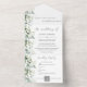 Stylish all in one wedding design featuring a eucalyptus greenery border on a clean white background. Includes RSVP with a scannable QR code that you can link to your wedding website. Generate your own unique QR code via the "personalize this template" feature on the product page. Add your URL to the area provided and a brand new QR code will generate on the design just for you.
