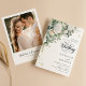 Showcase your love with our Elegant Greenery Eucalyptus Rose Photo Wedding Invitation. Featuring lush eucalyptus, delicate roses, and your favourite photo, this design beautifully combines personal charm with natural elegance for a memorable announcement.
