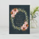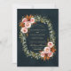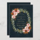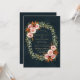 Elegance reigns supreme in this modern formal fall wedding invitation with a floral botanical theme. A watercolor illustration of an oval frame made of eucalyptus and greenery, with two floral corners made of peach and blush roses with copper and terracotta foliage and grenery decorates this elegant, simple and sophisticated fall wedding invitation template with a dark green background. A lovely choice for a fall wedding in the autumn months of September, October and November. Perfect for couples who love watercolor art, botanical themes, floral themes and formal, traditional, modern classic designs.