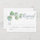 VG Invites watercolor greenery design frames your rsvp information with Victoria's hand painted watercolor eucalyptus leaves. Beautiful printed on Laid textured card stock. A pretty and sophisticated choice for fall, spring and summer weddings. Designed by Victoria. To see more visit www.zazzle.com/vginvites