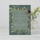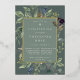 Chic botanical invitation for baptisms, christenings, or baby dedications features a border of lush sage green botanical leaves and watercolor eucalyptus foliage with gold foil trim. Personalize with your ceremony and party details in modern lettering on a tone on tone moss green background.