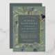 Chic botanical bat mitzvah invitation features a border of lush sage green botanical leaves and watercolor eucalyptus foliage with gold foil trim. Personalize with your ceremony and party details in modern lettering on a tone on tone moss green background.
