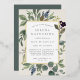 Chic botanical bat mitzvah invitation features a border of lush sage green botanical leaves and watercolor eucalyptus foliage with gold foil trim. Personalize with your ceremony and party details in modern lettering on a crisp white and soft ivory background.