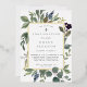 Chic botanical confirmation invitation features a border of lush sage green botanical leaves and watercolor eucalyptus foliage with gold foil trim. Personalize with your ceremony and party details in modern lettering on a crisp white and soft ivory background.