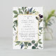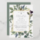 Chic botanical first holy communion invitation features a border of lush sage green botanical leaves and watercolor eucalyptus foliage with gold foil trim. Personalize with your ceremony and party details in modern lettering on a crisp white and soft ivory background.