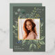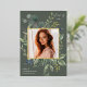 Our Eucalyptus & Sage graduation announcement frames a photo of your graduate with an elegant square border of lush watercolor eucalyptus and sage green leaves, with real gold foil trim on a tone on tone moss green background. Personalize with your graduate's class year, name, and school. Add a personal message to the back, along with an additional photo.