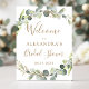 Eucalyptus Botanical Greenery and Faux Gold Foil Watercolor Wedding Spring or Summer Wedding Bridal Shower Welcome Sign - includes beautiful and elegant script typography with modern tropical botanical flowers and greenery for the special Wedding day celebration.