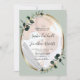 Eucalyptus Sage Photo Overlay Gold Metallic Oval Wedding Invitation... Our eucalyptus photo wedding invitation features a gold metallic oval frame embellished with emerald-hued eucalyptus leaves bordering a photo of the bride and groom on a light sage green background. Your photo will be placed on a layer underneath a white transparency to "fade" the colours somewhat so the text on top is readable. All example text can be easily revised with your own information on the personalization template. Part of a wedding suite with coordinating accessories in the same eucalyptus sage theme.