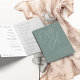 A beautiful typography based wedding program card featuring your initials in oversized script lettering on the front cover, in tone on tone shades for a watermark effect. Personalize with your ceremony details and wedding party, and add additional custom text to the back. Our Eucalyptus colorway is an elegant mix of dusty greens, featuring pale green and white lettering on a sage green background.