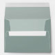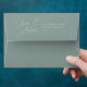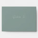 Designed to match our Script Watermark wedding invitations, this elegant colour coordinated envelope features your names and return address on the back flap. Our Eucalyptus colorway is an elegant mix of dusty greens, featuring pale green and white lettering on a sage green background.