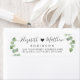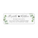 Elegant, Modern Watercolor Eucalyptus Hand Lettered Script Wedding Return Address Labels. Featuring a beautiful hand-written script bride and groom's first name template with swash-tail font in black, little heart shape between the names, green watercolor eucalyptus arrangement on white colour background. Easy to personalize them with your names and return address info.