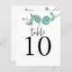 A size 4.5 x 5.6” semi-gloss 110lbs weight, which is of similar thickness to a postcard, with ONE per sheet. Minimalist Eucalyptus Script Wedding Table Number. Table is in a set handwriting style script and your table number beneath. Easily personalise the number. The same design is also on the back.