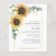 Cute modern yet elegant Quinceañera Mis Quince Anos birthday party invitations. Rustic floral sunflower eucalyptus and faux gold leaves and geometric frame. The template you can easily edit by clicking the "Personalize" button. For further customization, please click the "Customize Further" link and use our design tool to modify this template.