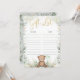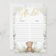 This elegant gift list card features a cute teddy bear holding a heart-shaped balloon framed with a beautiful watercolor greenery wreath.